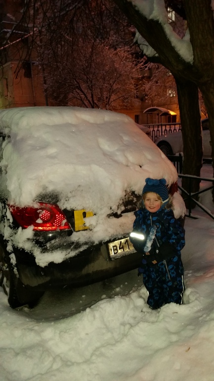 Выходим с Лео в садик, а на улице сказочная погода!!! Снег!!!