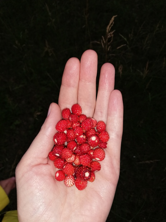 Лев мечтал о земляника весь год! Сегодня пошли проверить на вечерней прогулке и вуаля, есть красные ягоды!!!