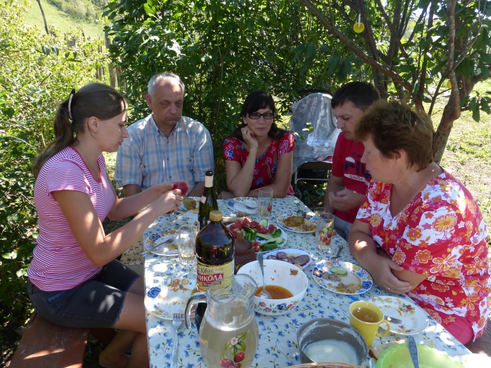 Конечно, к нам всё лето приезжали разного рода гости. В первую очередь это наши родители. Папа Игорь и мама Люда были практически каждые выходные. Мама занималась валянием из шерсти, а папа копался в тракторе, помогал нам устраивать быт, искать воду. Он привез из города квадроцикл и устраивал мотопрогулки по холмистым красотам нашего села.