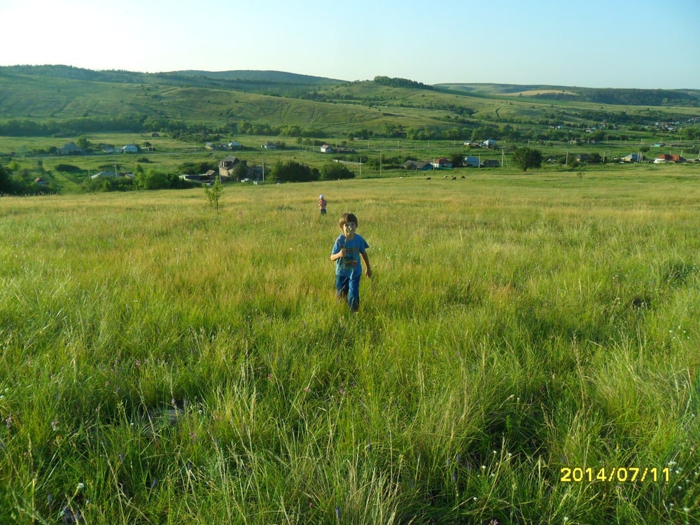 Мы устраивали походы с козами и псом Барханом в наши «горы». Для этого нужно было всего-то пройти в конец участка и пересечь небольшое поле подсолнухов и сухое русло некогда текущей вдоль холмов речки. О ней до сих пор напоминают старые ветлы, растущие вдоль русла, и плотина. Как потом выяснилось, в этом месте были колхозные плантации овощей.
