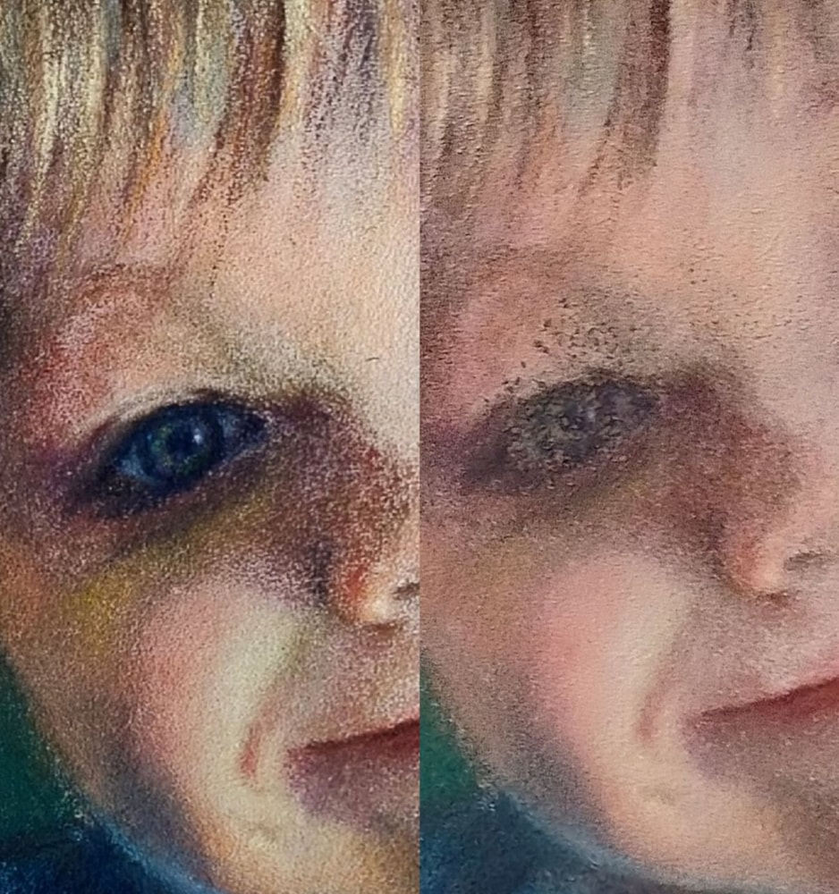 Пастель - материал очень долговечный, но требует бережного обращения, именно поэтому работы обязательно оформляются под стекло.