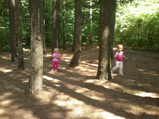 Вышли мы в 11.15, а вернулись в 16.30. Время проелетело незаметно, девочки наши были на сухом пайке, и как ни странно не уснули по дороге назад. Посидели в песочнице, погуляли по аллеям, побесились на травке., посмотрели кур, гусей, надышались воздухом.