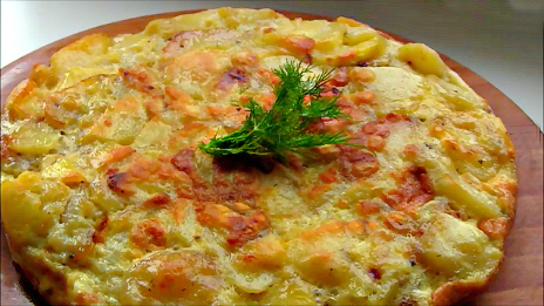 Испанская тортилья ( tortilla de patatas ) это смесь жаренной картошки и омлета . Рецепт очень простой , из всем доступных продуктов .