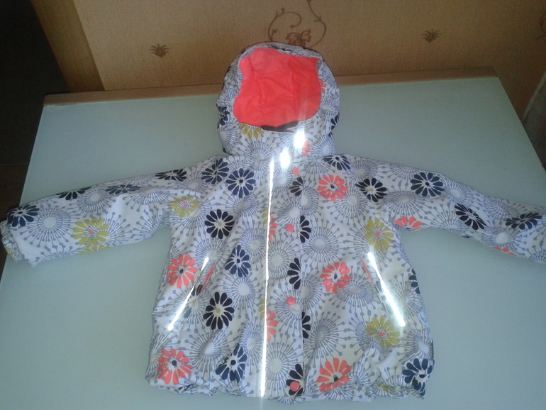 Влагооткалкивающая ткань, отлично стирается. Капюшон отстегивается.