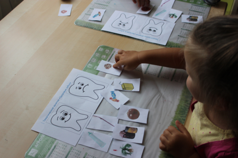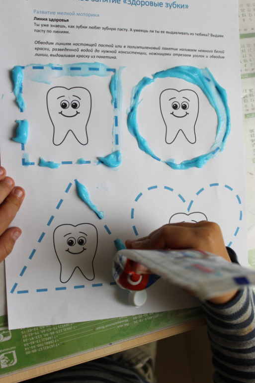 Подитожить занятие смешной игрой. Попросите малыша помочь вам записать правила ухода за зубами.