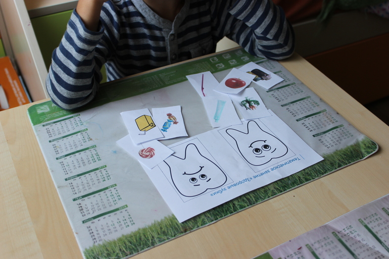 1. В гнездышки положила курочек. Нужно было отсортировать яйца по цвету с курочками, посчитать сколько в каждом гнезде их. А потом по убывающей расставить гнездышки. С последним заданием я помогала доче.