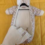 Очень красивый яркий . Размер 80. Покупала заранее-не угадала с размером, переросли.