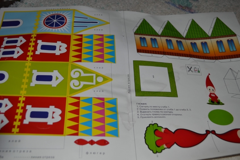 Ну и творчество было, само собой! Раскрашивали домики и фломастерами и точечным методом (карандашом с резинкой). И поделку смастерили из "Школы Семи Гномов" - домики!