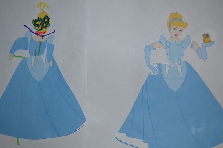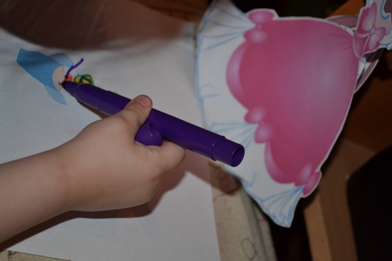 Потом девочки раскрасили раскраску, одевали Золушку сначала в свое платье, а потом в бальное. Золушку я наклеила на картон, и было удобно на такую твердую фигурку надевать платье!