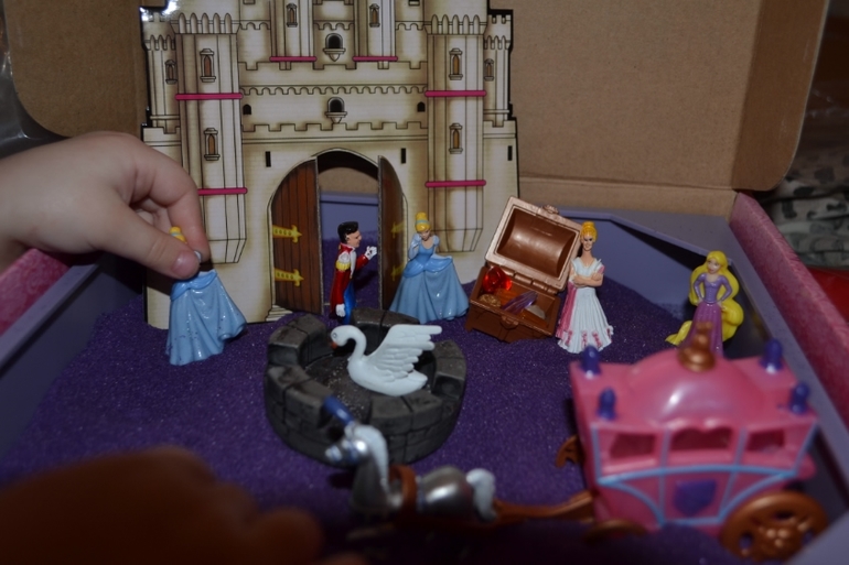 Мы прочитала сказку в очень упрощенном варианте, а потом обыгали тематическую коробочку "Золушка" (заказывала в интернете) с кварцевым песком (фиолетовым). Безумно интересно - все прилагалось и карета, и туфелька и принц! Чудо просто! Девочки были в восторге! А потом еще и в другой тематической коробочке продолжили игру, там был замок и дракон ,так девочки стали придумывать свою сказку ,как Золушку утащил дракон, а принц ее выручать пошел! Вообщем было весело!