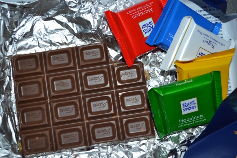 Ну и наелись шоколада, куда уж без этого! Фотографий было больше! Такие шикарные кадры, где дочки с ног до головы в шоколаде вымазаны! Очень обидно, что закончилась карта памяти! Причем в фотоаппарате их видно, эти кадры! Может они где-то и есть, но я не смогла найти! Обычно формируется новая папка, если до предела забита карта, в этот раз что-то не произошло этого! Но первые три кадра есть! Это когда шоколад еще не съеден весь!