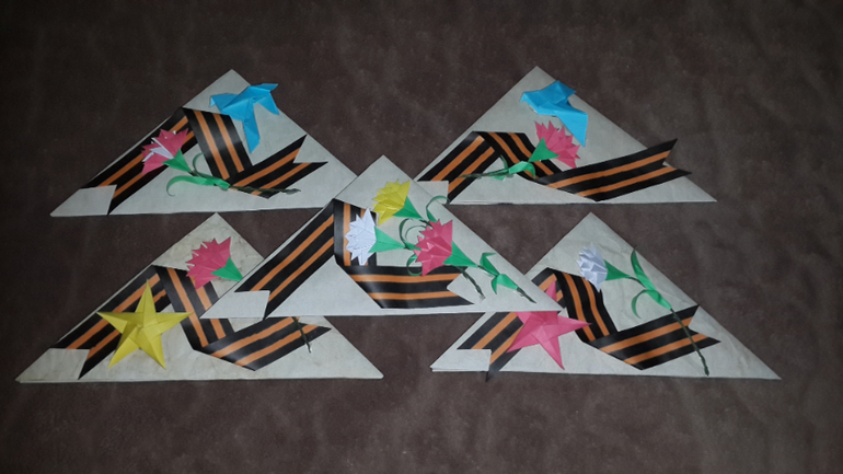 В этом году для поздравления Дорогих Ветеранов делали с детьми вот такие необычные открыточки.