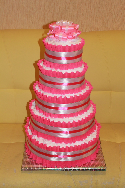 Торт из памперсов для любимой племяшки. Первый раз делала сие чудо. Получилось немного кривенько, но зато с любовью