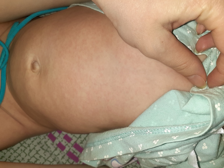 У ребёнка была ангина, 4 дня стояла температура 37,3 - 37,9. Началась кишечная инфекция (понос). Начали принимать такие препараты: Сумамед, Энтерол, кора дуба, безлактозная смесь Нутрилон. Через два 2 пошла аллергия