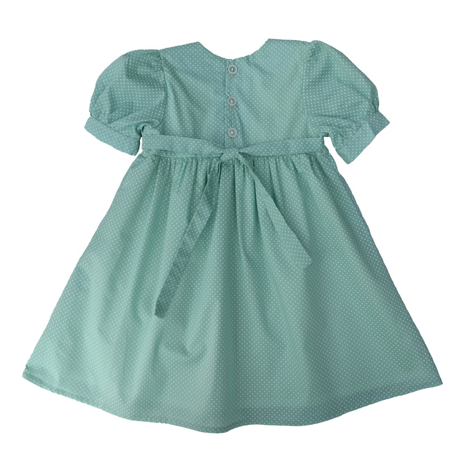 Платье с перелиной (арт. #0201002/0413). Размер 98, 104, 110. Цвет бирюза в мелкий белый горошек. Платье на подкладе 100% ХБ.