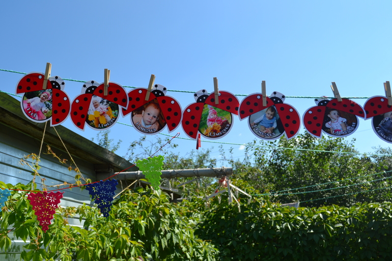 Вот и прошла середина июля!Мы очень ждали этого момента,т.к. 15 числа у нашей любимой дочи Алиночки был День Рождения,ей исполнилось 2 года!В том году я потратила очень много сил и времени на то,чтобы своими руками сделать украшения,придумать конкурсы,нарисовать,вырезать,приклеить...А в этом году,благодаря замечательной креативной девушке Юлианне Корнеевой (http://m.babyblog.ru/user/lenta/id1348467,ее страничка в вк http://vk.com/babysurprise и группа http://vk.com/golden_hands44),мне не пришлось сидеть ночами и что-то выдумывать!она выслала мне на почту готовый набор декора на праздник в стиле "божья коровка",который я только распечатала и вырезала!все гости были в восторге от этой идеи!всем,а особенно,имениннице понравились различные украшения,декор для фотосессии и растяжка фотографий от года до 2х лет!!все было такое необычное,яркое,запоминающееся!чувствовалась атмосфера детского праздника!хочется сказать огромное СПАСИБО и слова благодарности автору украшений!!!без вас не получился бы полноценный праздник!!!!желаю вам побольше креативных идей,творческого развития и роста!ну и немного фотографий
