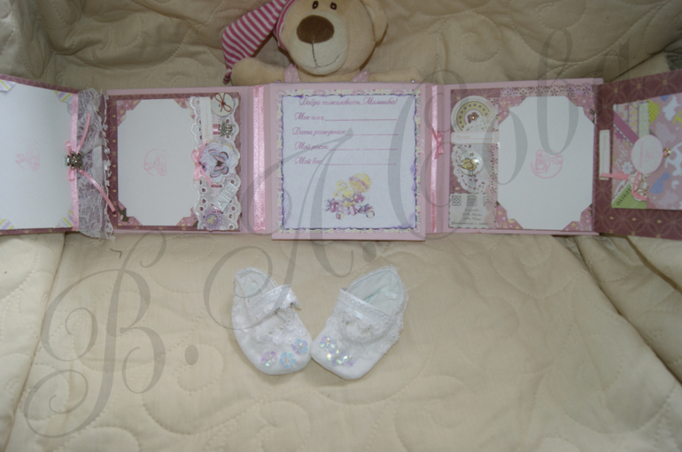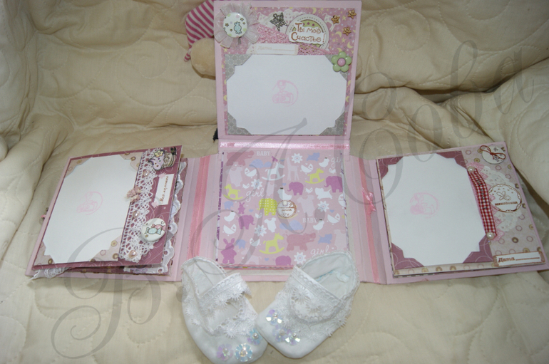 Детский фотоальбом для маленькой принцессы с отделениями под диски с возможностью размещения 9 фотографий 9*13 а также записи "Мой рост и вес"(до года), "Мои зубки", и кармашек для самого ценного "Первое узи" и "Бирочки". этот альбом станет приятным подарком для молодой мамочки и ее крохи.