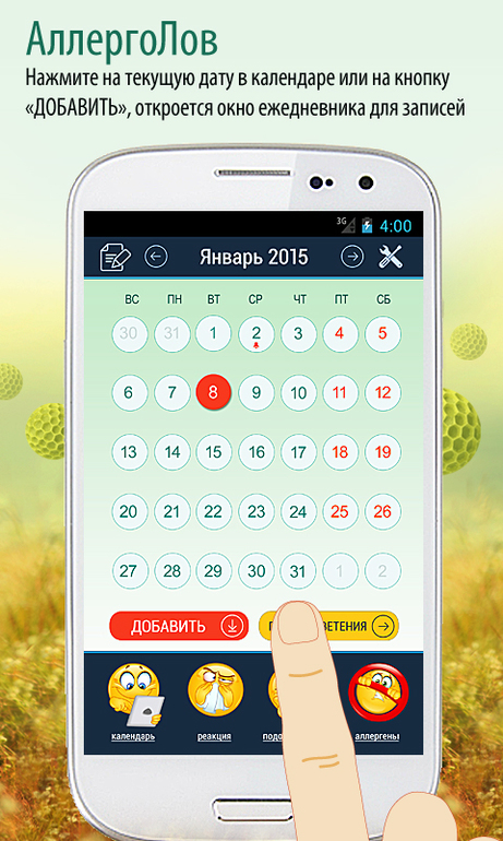 "АллергоЛов" - календарь аллергика, помогающий выявить пищевые и непищевые аллергены и убрать из повседневного рациона и быта продукты и вещества, вызывающие аллергические реакции. В основе технологии уникальный математический алгоритм, который сопоставляет ваши аллергические симптомы с продуктами и веществами из вашего рациона и быта.