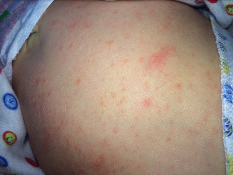 В общем сыпь появилась где то в 1,5 недели на лице не много, потом пошла на голову и начала опускаться, теперь весь живот в ней, спина начала покрываться этими прыщами и ножки с плечиками. Выглядит все так: мелкая сыпь красная, если полежит на боку например то сильно краснеет это место, врач говорит аллергия, но я ничего такого не кушаю, все варено-пареное и диетическое. Сейчас сдали анализ на флору, ждем результат. Нам сейчас месяц, что делать не знаю, это ужас, на ребенка страшно смотреть. Может кто сталкивался с такими высыпаниями