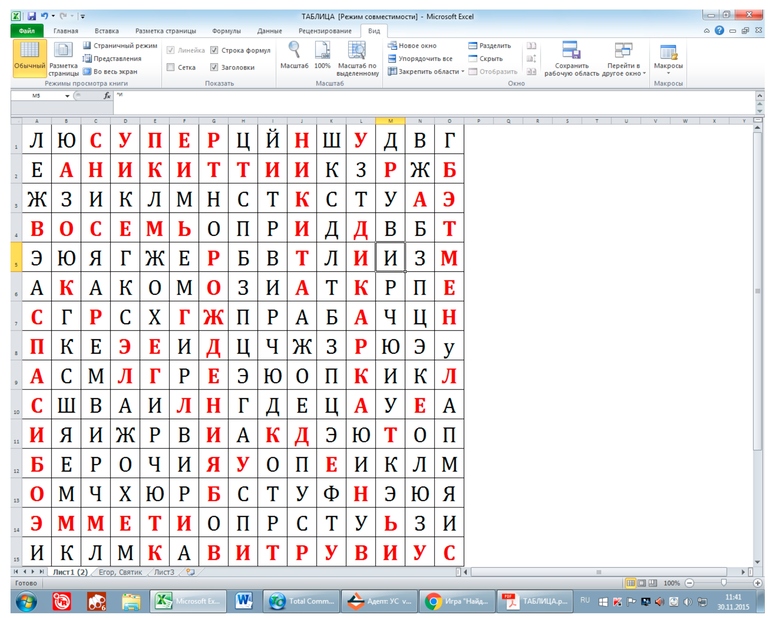 Вот что получилось. Может кому-нибудь пригодится. Слова придумала сама, зашифровала их в обычном Excel и в фотошопе вставила в карточку.))))