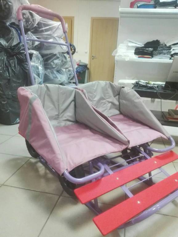 На складе в Москве (м.Бауманская) есть в наличии санки для двойняшек или погодок с колесами.
