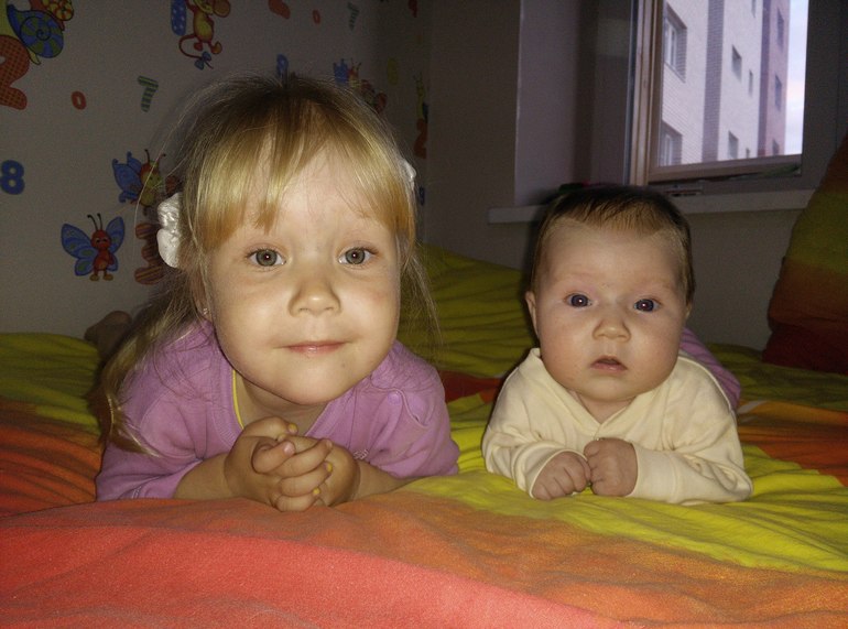 Милана очень долго ждала появления на свет сестренки. Каждый день спрашивала: Ну когда ты пойдешь за Полиной?))))))И вот они уже вместе играются)))))))