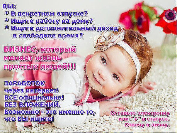 Ищу людей, которым будет интересно построение бизнеса в интернете без рисков. Быстрый карьерный рост. Вся работа введется только в сети интернет. Требуется немного свободного времени и доступ в интернет. Если заинтересовало, ставим "+" в комментариях, отвечу всем! ))