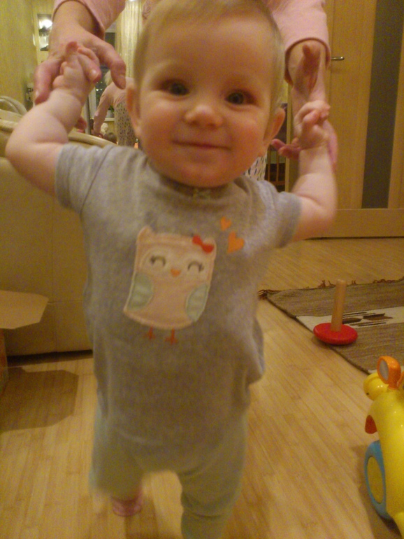 Наконец-то моя девочка пошла ! (23 февраля чтобы не забыть). Почти в год. Мы такие мелкие что я думала еще в 9 месяцев побежит, но нет... За ручки с мамой мы бегали и сметали все на своем пути, а сама - никак не хотела. Это наверное самый осторожный ребенок на свете ))