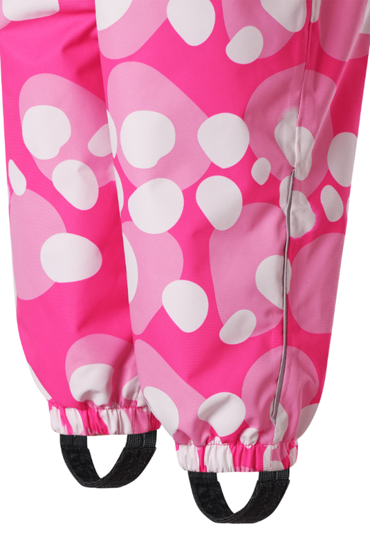 Я раньше могла нечаянно молнией подбородочек прищемить, но в этом комбинезоне стоят удобные ограничители на замочке, которые защищают малышку. Нельзя не отметить супер удобные штрипки. Сейчас, конечно, большинство комбинезонов сшиты именно со штрипками, но далеко не всегда они практичные и удобные. У нас у зимнего костюма они слишком слабые, постоянно спадают, штанина задирается. А у Реймы они плотные, но при этом очень упругие, одеваются без усилий, но не спадают даже во время активных игр. Хорошо, что они отстегиваются, часто стираем их отдельно. Капюшон кстати тоже отстегивается.