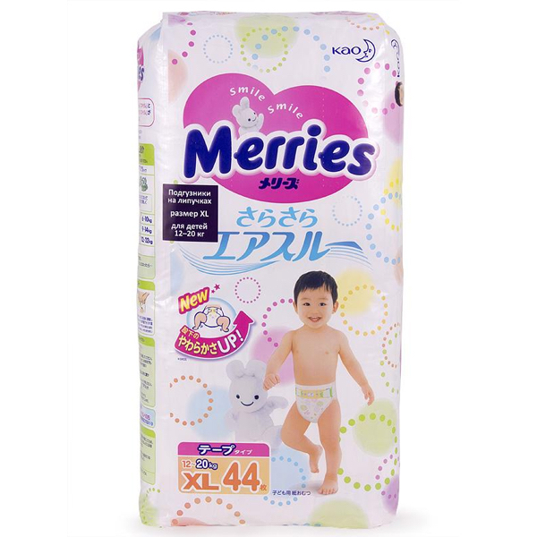 Merries подгузники, XL (12-20), 44 шт - 1 400р.