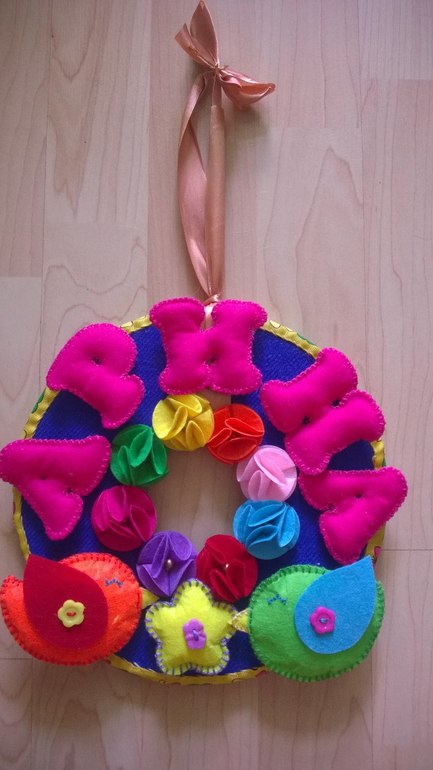 Именное кольцо из фетра. Сделано из велкроткани, буквы, птички и цветок на ли