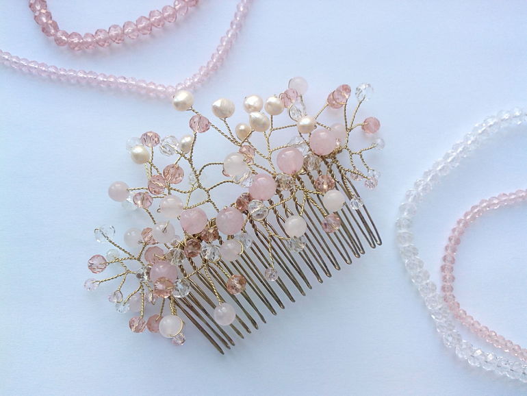 А чтобы хоть немного отвлечься от неприятных мыслей - творю)) получился на днях у меня такой вот гребень для волос. И ещё один для сестрёнки - с нежно-голубыми и синими бусинками, но его покажу чуть позже) не успела ещё сфотографировать.