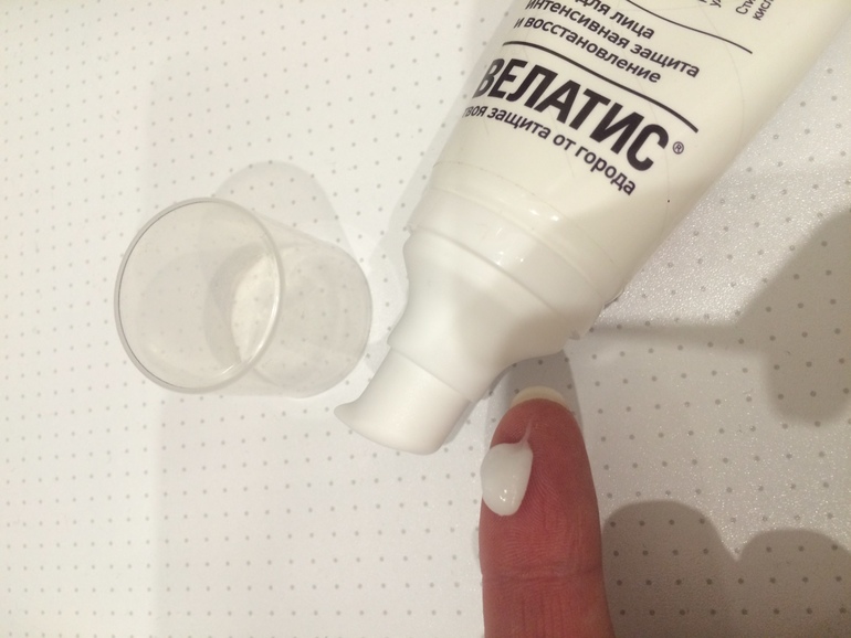 Называется крем Велатис. Купила его в аптеке ближе к концу января где-то. Купила случайно, ну и фармацевт рекомендовала, когда я внимание обратила. Сказала, что новинка у них, но вроде как супер-пупер крем. Крем оказался правда классным - впитывается очень легко, не оставляет жирной пленки и нет его ощущения на лице. Плюс, что тюбик с дозатором. И еще консистенция очень приятная, больше похож на эмульсию. Радует, что линия защитная и восстановление. Состав на фото. Пользуйтесь :)