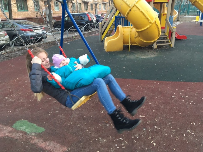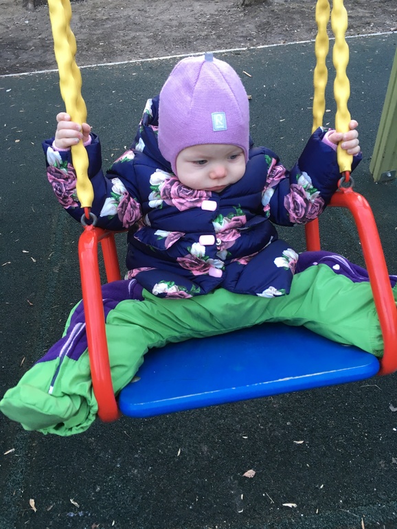 Но как же?! Ребёнок гуляет, дышит свежим воздухом, но чегг то ему не хватает! Конечно, покачаться на качелях. Какое же детство без качелей, думаю что в любом городе найдётся парочках качелек куда ребёнок сможет уместиться, если таких нет, возьмите его на ручки, подарите 5-10 минут восторга