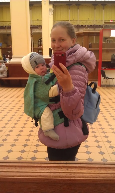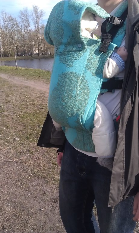 Скоро лето и мы задумались о расширении слинго-гардероба. В этот момент мне на тест-драйв попал слинг-рюкзак Diva Essenza Fantazia. Цвет мой любимый голубой, поэтому первая же встреча с рюкзаком настроила меня на позитивное общение с ним. Шарфовая ткань рюкзака позволяет обнимать ребенка очень мягко, но крепко. У меня покатые плечи, поэтому вариант ношения накрест мне подходит больше. Данная модель позволяет носить лямки параллельно и накрест. Попробовали и то и другое, дискомфорта не возникло совсем. Но надежней, кажется перекрестить. Широкий пояс удобно садится, хорошо затягивается. Длина позволяет носить и маме и папе. Для деток 5-8 месяцев или некрупных производитель рекомендует отрегулировать спинку по ширине. Наша девочка некрупная, мы сдвинули спинку, но всё равно осталось впечатление, что немного давит под коленками. Есть капюшон, который можно использовать как подголовник или закрыть ребенка, когда он уснул. На капюшоне есть утяжки. Но мы не использовали. Отдельно хочется сказать про ношение за спиной. Мы надевали таким образом впервые, слинг-шарф не решались. С рюкзаком оказалось немного проще. Очень приятно чувствовать, как тебя обнимает родной комочек сзади:)) В комплекте есть вставка для младенцев, но нам не пригодилась, потому что дочка уже достаточно выросла, чтобы носить без вставки. Очень понравилось, что основные защелки закрыты резинками, чтобы не поранить руки. Так же есть резинки с помощь которых можно закрепить лишние висящие ремни. Очень удобно и эстетично. У нас очень активная девочка и когда она сидит в слинге руки спрятать очень сложно, а иногда нужно. В рюкзаке ручки можно убрать внутрь довольно комфортно и возмущения со стороны ребенка я не слышала. Итог: с рюкзаком - слингом мы успели съездить по делам в центр, и погулять рядом с домом, побывать на Ночи музеев и сходить в гости. Очень удобно быстро перестегивать с мамы на папу, это пригодилось нам в музее. Со слингом справлялись бы дольше. Спасибо магазину http://be-mama-shop.ru/ за возможность попробовать новый формат. Рекомендуем слинг-рюкзак Diva как основное средство переноски или в дополнение к обычным слингам