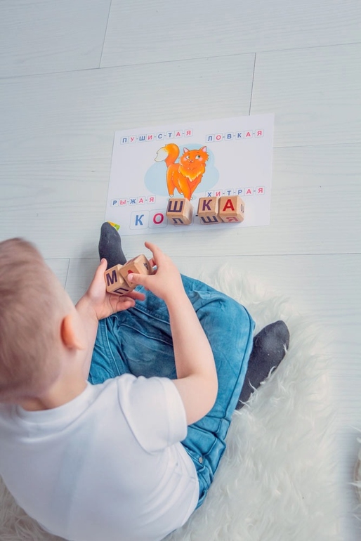 Из первых четырех кубиков, зная только 4 гласных и 4 согласных буквы, малыш сможет составить первые 60 слов.