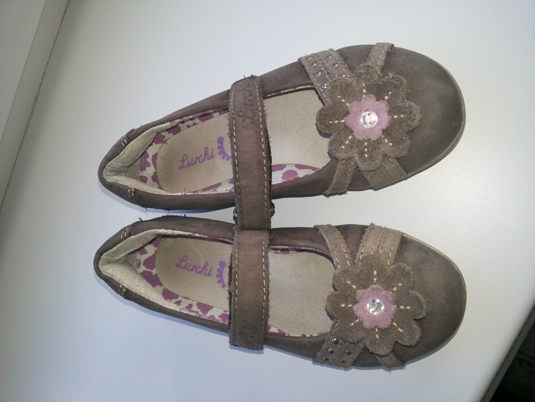 4. Туфельки "Капика"- розовые, натуральная кожа,ортопедическая стелька, фиксируются ремешком с липучкой, размер 22, по стельке 14 см. Носили в помещении, но стерли носы- видно на фото. Цена 350 рублей.