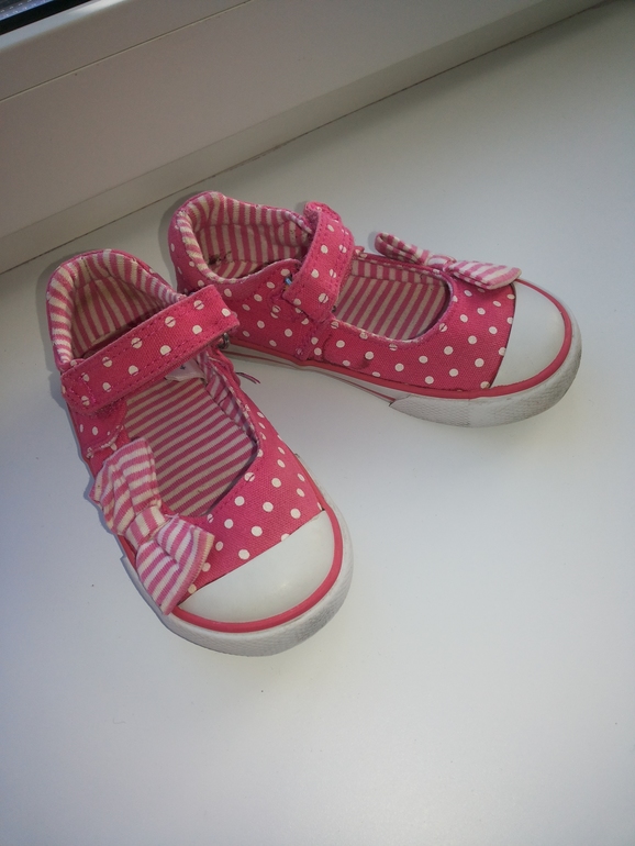 1. Балетки Mochercare текстиль розовые в горошек на липучке размер 23, по стельке 15 см. Хорошее состояние. цена 100 рублей.