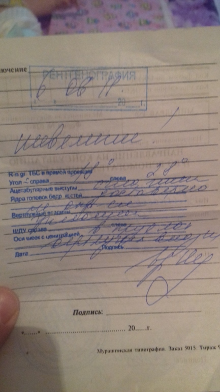 Дочке скоро 4 месяца ходили на рентген т/б суставов, так как был риск развития дисплазии обеих суставов ещё с роддома. И вот заключение, таскали шину фрейка, это рентген уже после её ношения. Что тут? И как плохо ли это? Завтра пойду к врачу, тут на всякий случай поинтересуюсь, может кто что знает по этому поводу!