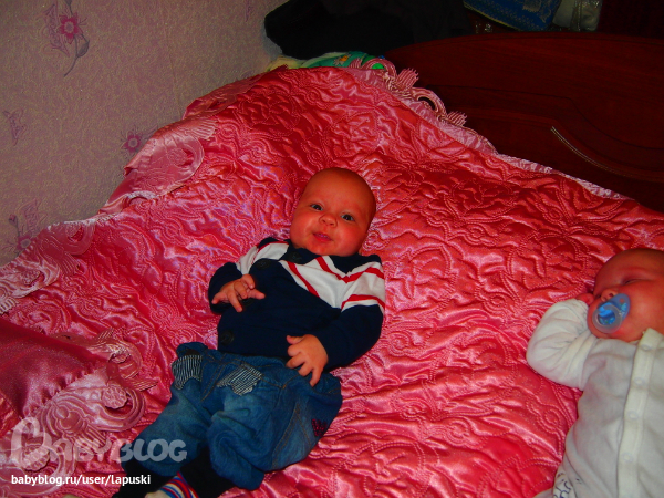 , а Артемьюшка ни чего подобного... с диким кряхтом и визгом пытается повернуться на живот и заваливается обратно с "О-оо..." Доча и спит на животе, а сыночку животик мешает! Что с ним делать!?