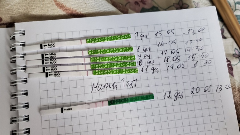 Двух ярких полосок так и не увидела. Но возможно нужно было делать тесты утром и вечером. 18.05 сильно тянул живот, как перед ме...