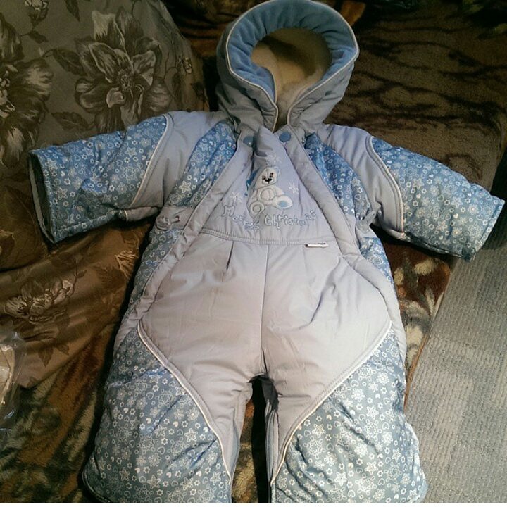 Комбез на овчине,трансформер можно с рождения и до года. Рост до 86. К нему пинетки и варежки.без изъянов. Просто выросли.