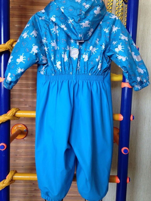 Носили осенью и весной. Под низ надевали колготы и футболку. Очень выручал в промозглую дождливую погоду, ни разу не замерзли и не промокли в нем, хотя большие любители побегать по лужам. Комбез носили до 2-х лет, потом стали коротковаты рукава.