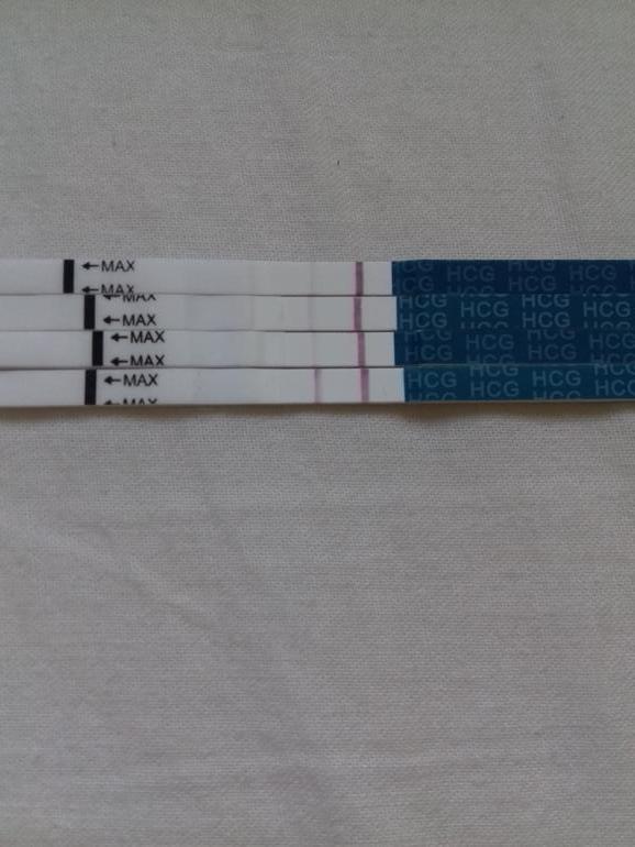 Первые два теста за два и один день до предполагаемых месячных, третий - в день предполагаемых месячных ( хгч 131) и последний - 4й день задержки.