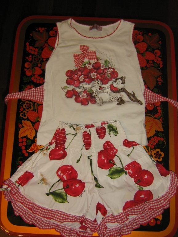 Комплект -тройка (футболка, юбка-шорты, легинсы) , состояние хорошее, все стразы на месте, юбку одели 2 раза. За все 4000р