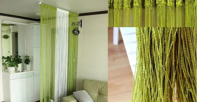 Хорошо будут смотреться нитевые шторы и на месте двери. В помещении, которое не нужно специально изолировать от остального дома - в кухне или гостиной, например, нитевые шторы станут отличной дверью, заменив собой старую деревянную перегородку. Вспомните советские времена и так называемые «бамбуковые занавеси», которые можно было увидеть едва ли не на каждой дачной веранде! Так вот, нитевые шторы можно считать далёким потомком тех занавесок. Последние, кстати, гораздо лучше своих советских собратьев - нитевые шторы в разы дешевле и эстетичней.