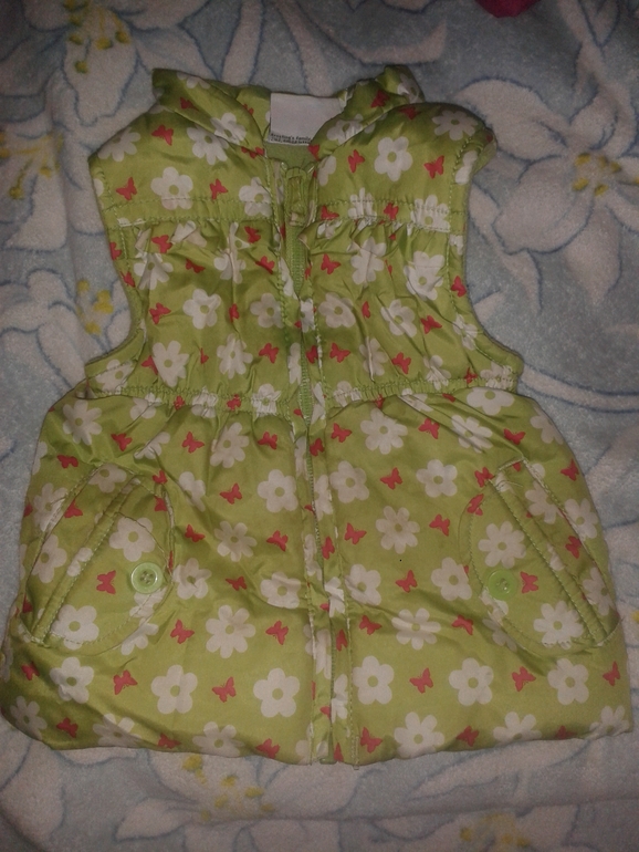 Жилет яркий и очень красивый. На годовалую модницу. Очень теплый. Заказывалам из германии.