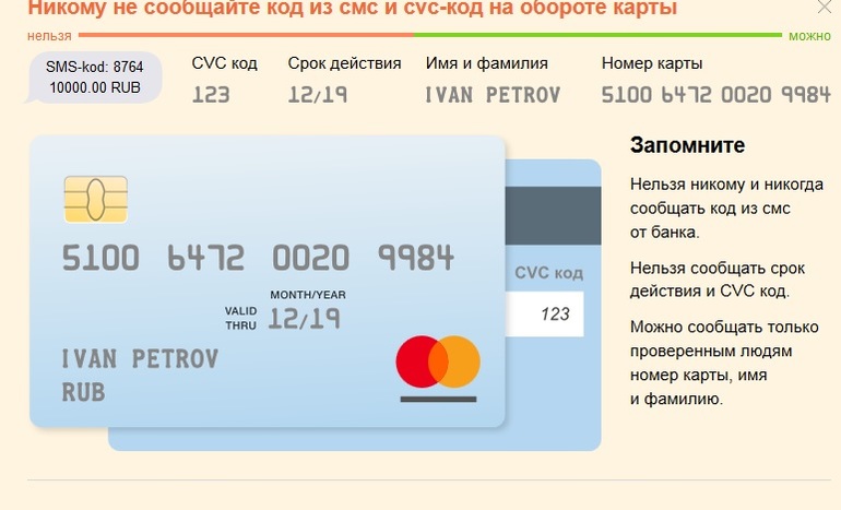 - Можно сообщать только проверенным людям номер карты, имя и фамилию.