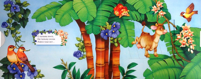 В книжке есть подвижные элементы, сменяющие картинки с неправильных на правильные.