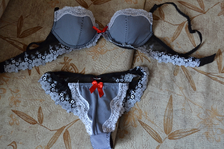 Два комплекта белья, оба 75-В, трусики 44 размера, красивые, одевала пару раз и тот и другой, мне были маловаты (оба подарены), думала похудею, а после беременности понимаю, что грудь все равно такой уже никогда не будет, поэтому отдаю:
